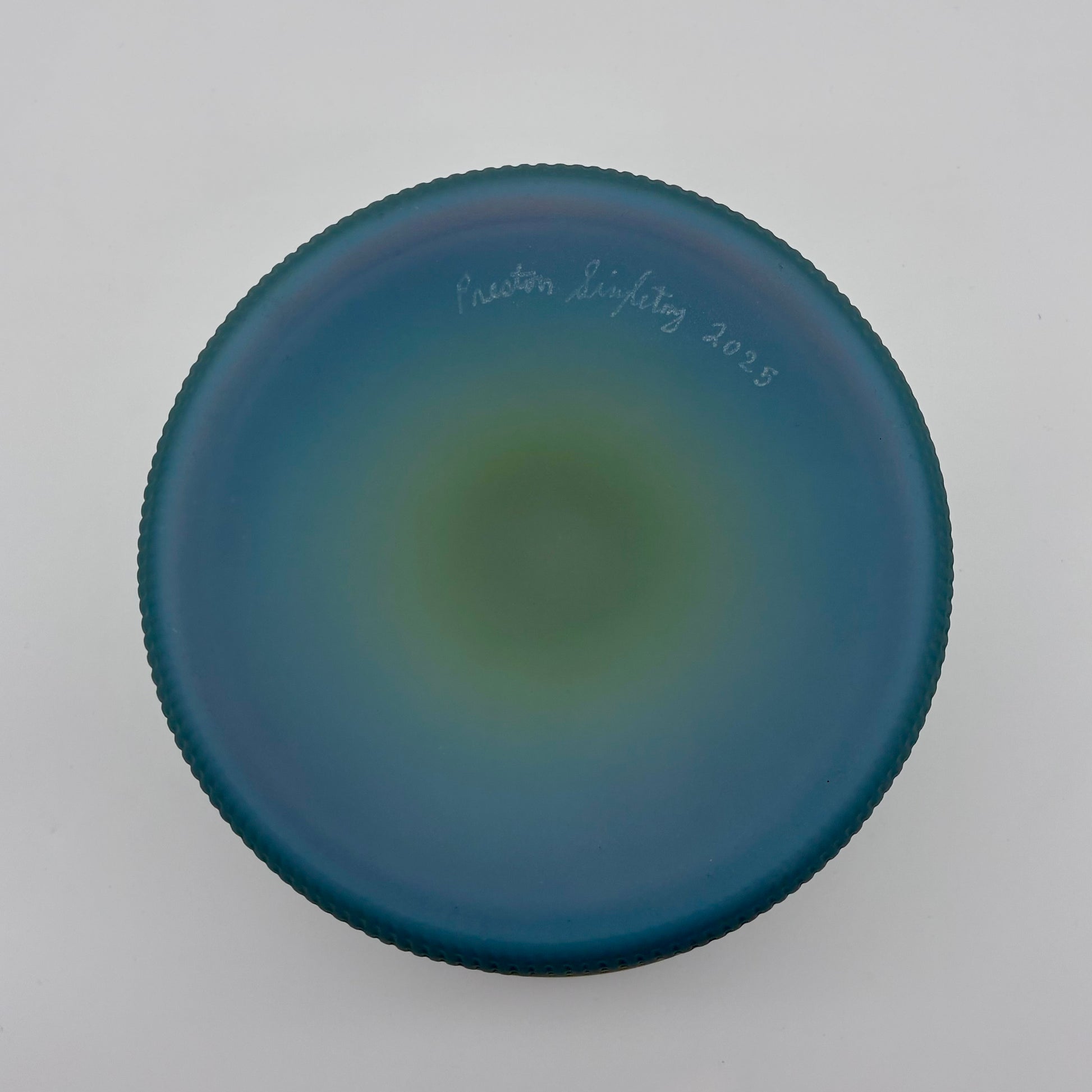 Finally, it is given a light sandblasting (called frosting) and coated with a special finish called Liquid Luster, to protect the now porous glass and give it its characteristic low sheen.