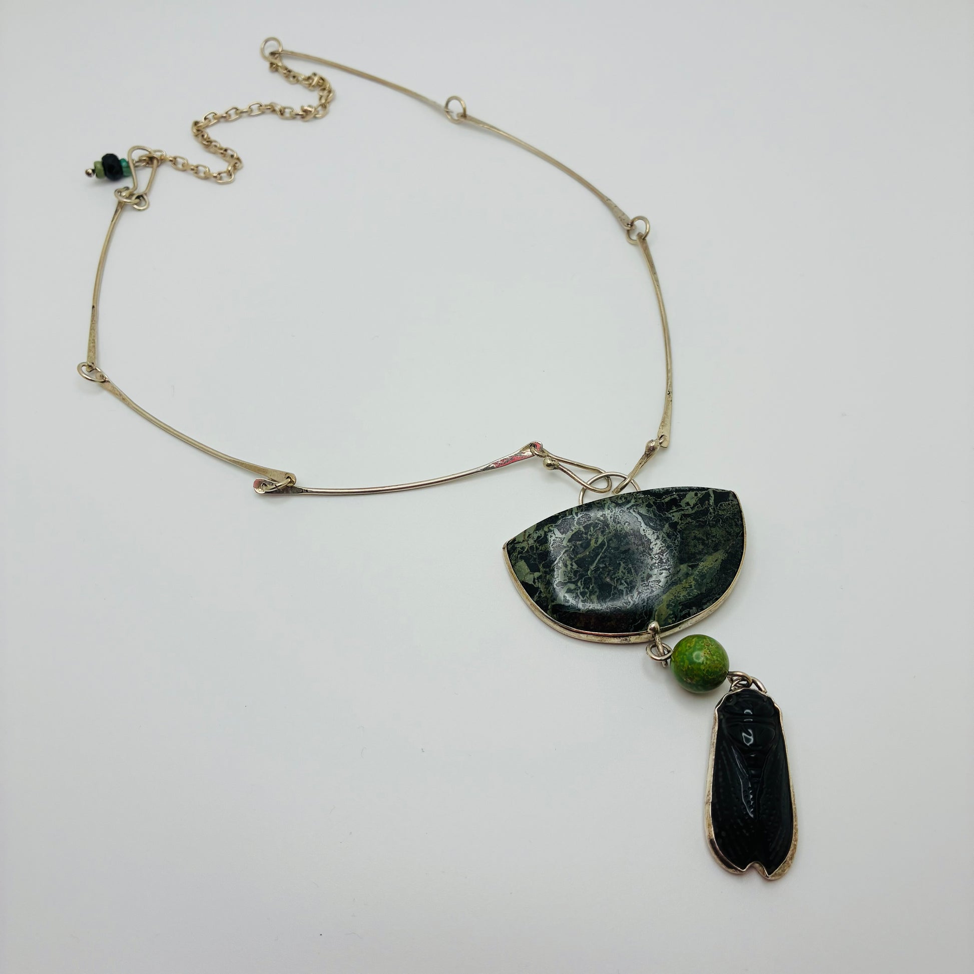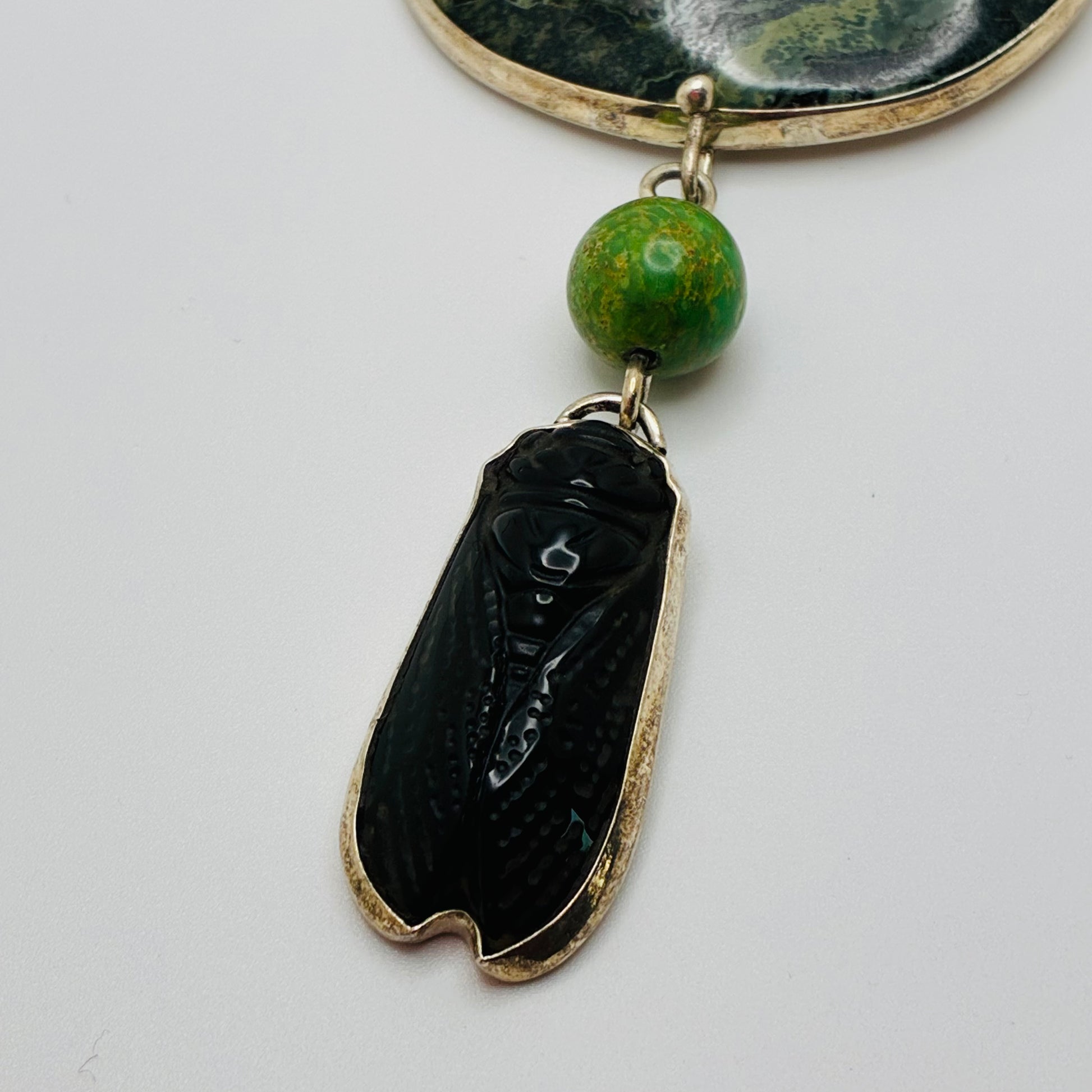 Black Beetle Necklace. Includes Jasper, Onyx, and Turquoise.