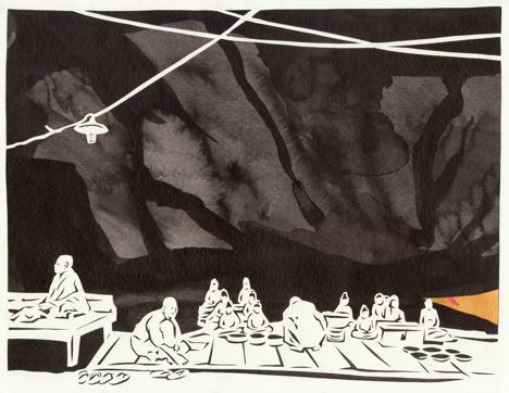 Lauren Iida (b. 1984) is a Seattle born Japanese American artist whose practice centers on intricately hand cut paper. Her work explores themes of memory, displacement, and resilience through the lens of her family’s incarceration during World War II and her long-term engagement with Cambodian communities. By combining traditional Kirigami techniques with watercolor washes and contemporary installation, she transforms archival photographs and personal stories into expansive paper nets, murals and mosaics. Her participatory Memory Net project invites audiences to contribute symbolic objects and stories, weaving individual memories into collective tapestries.