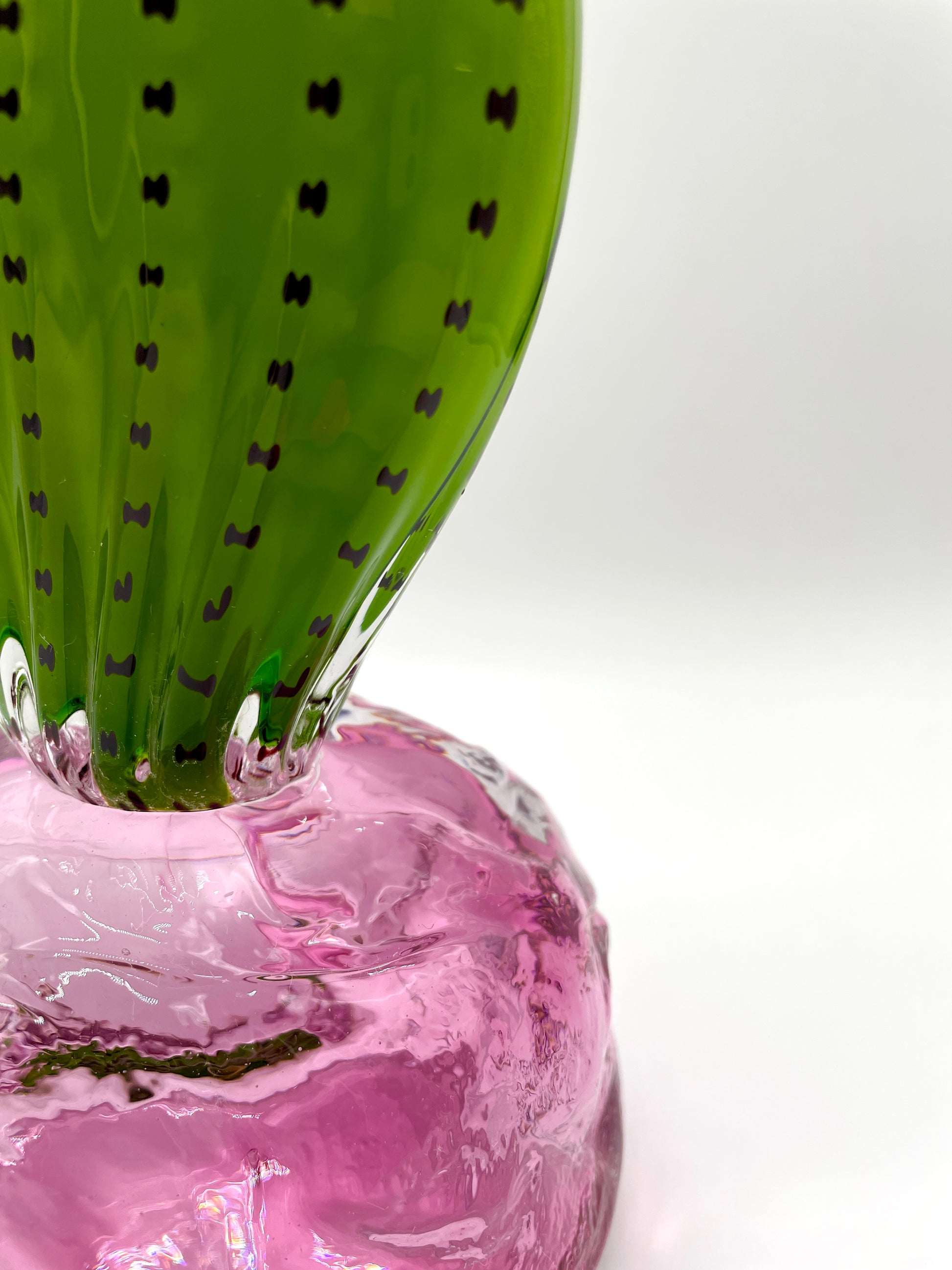 Nopal Jovencito (The Young Cactus) and Nopal Del Norte (The Northern Cactus) were inspired by Mesoamerican's Mexican peoples' (Aztecs) mission to find a new place to settle. They would know they had found their new home in the place where they found an eagle atop of a cactus eating a snake. Mexica people found that place in the Valley of Mexico, when it was Tenochitlan, now called Mexico city. As a Mexican Native, I use this history to remake Glass Nopales to tell one of the stories of where I am from and where my new home of Washington is for the past 20 years.