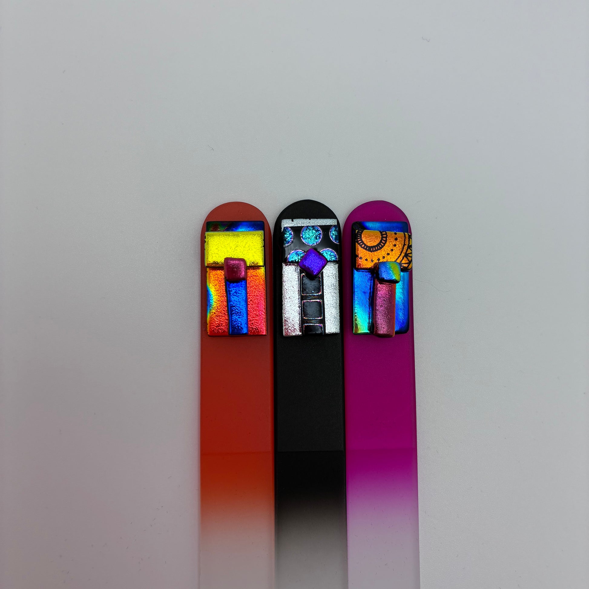 This glass nail file is delicate, stylish, and functional all in one product. Multi-color one of a kind nail files.
