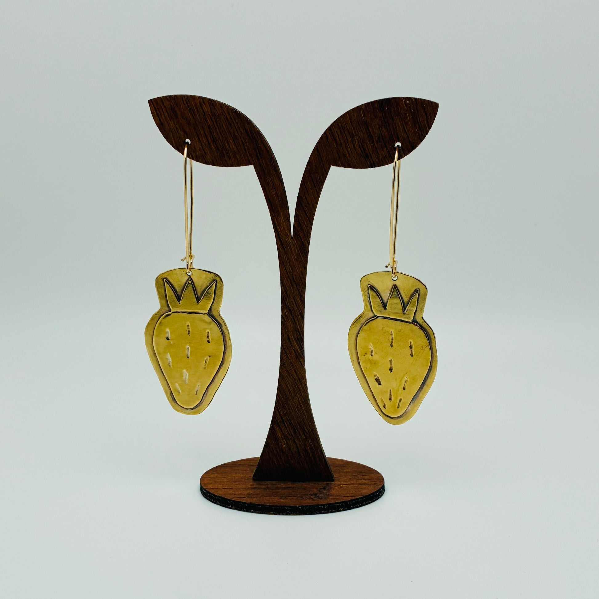Paige Pettibon: Strawberry brass earrings with gold filled ear wire.