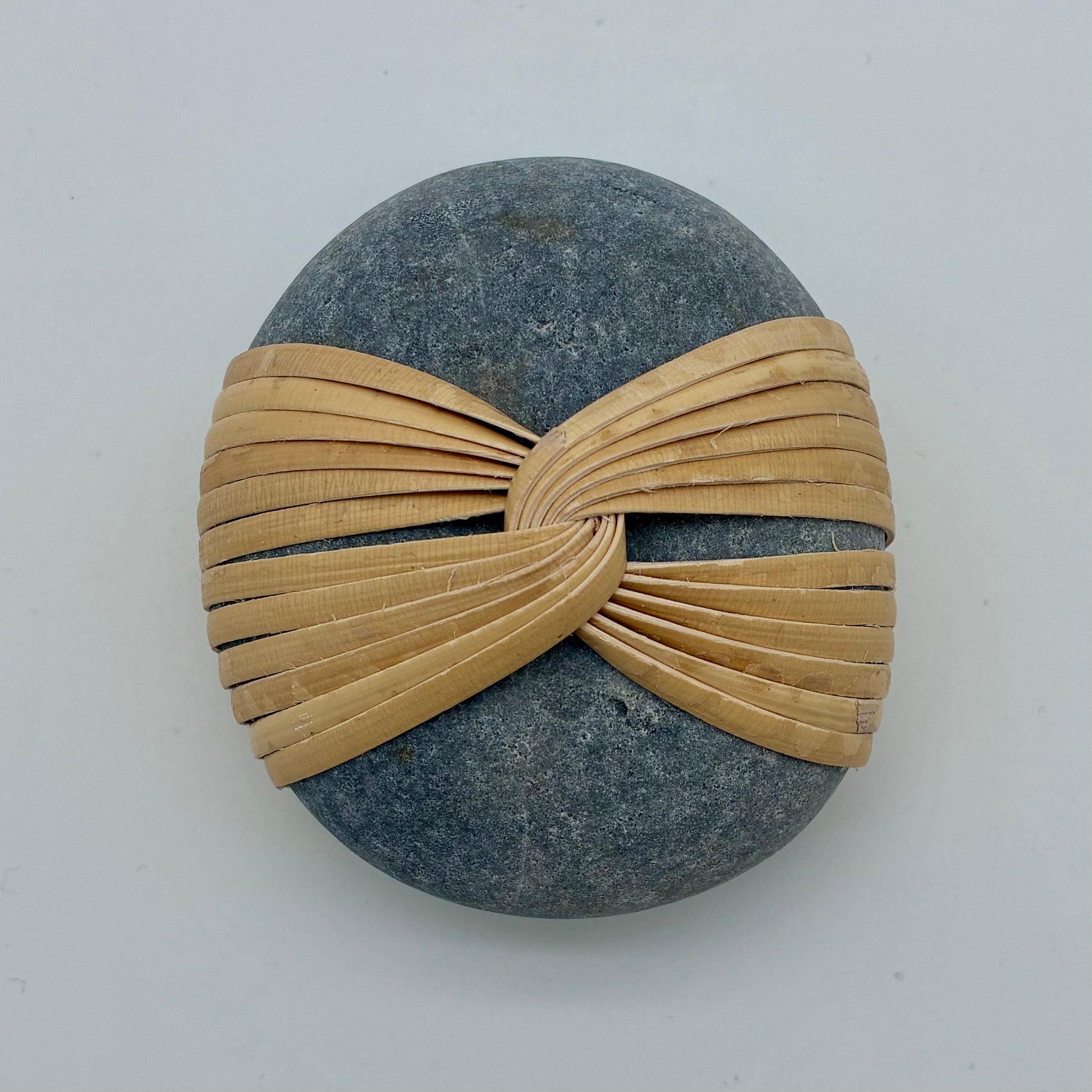 A smooth river rock becomes an eloquent object in the hands of Marcia Mahaffey. The Tacoma artist employs centuries-old techniques of Japanese basket weaving to make cane-wrapped stones that inspire contemplation about the power of moving water and the passage of time.